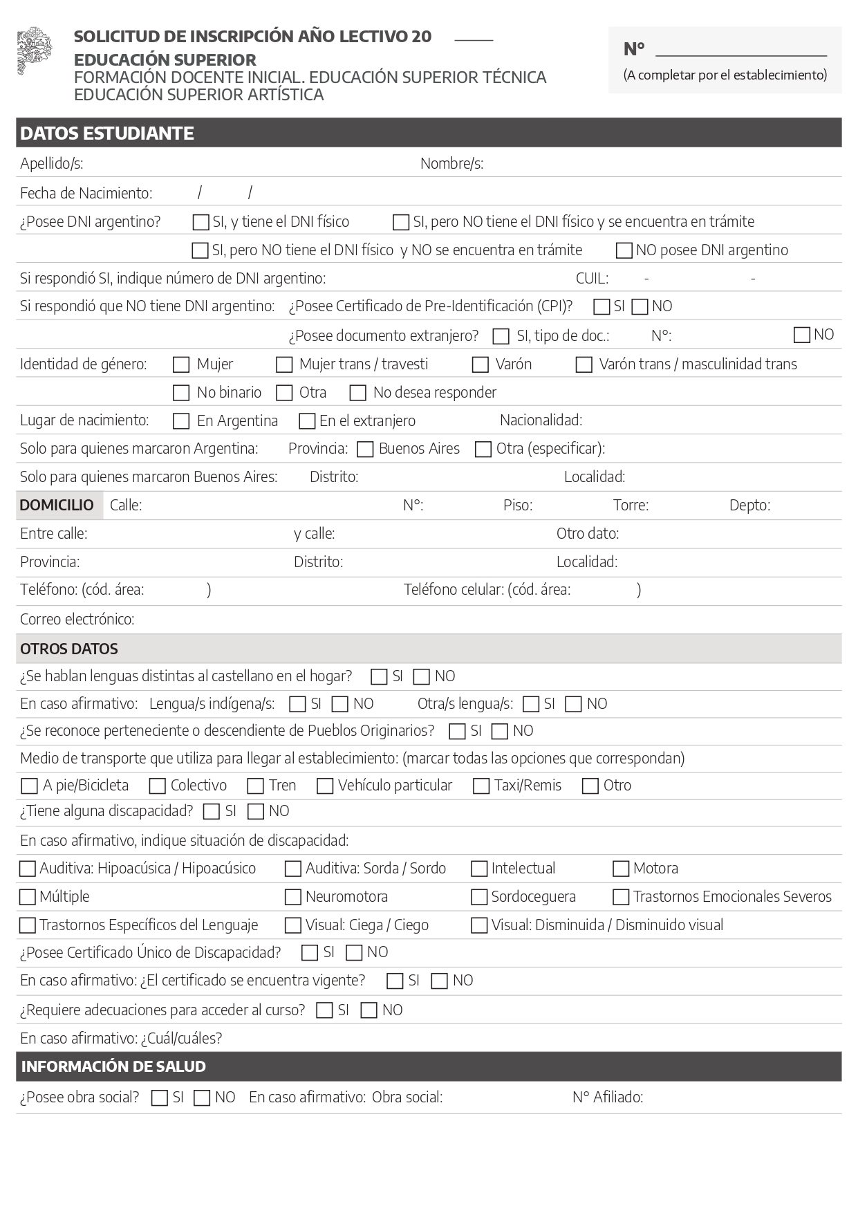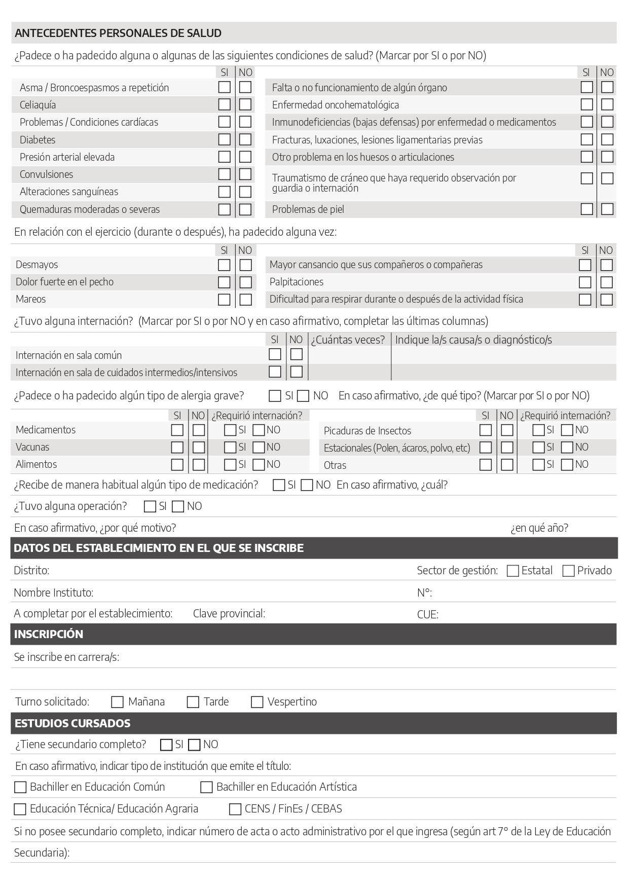 - Planilla de inscripción completa (disponible para descarga e impresión en: https://drive.google.com/file/d/1GqdoPJXhn5GLEBlOEHzBgaZ-ulOcTmH9/view?pli=1). O BUSCALA AL FINAL DE LA NOTA