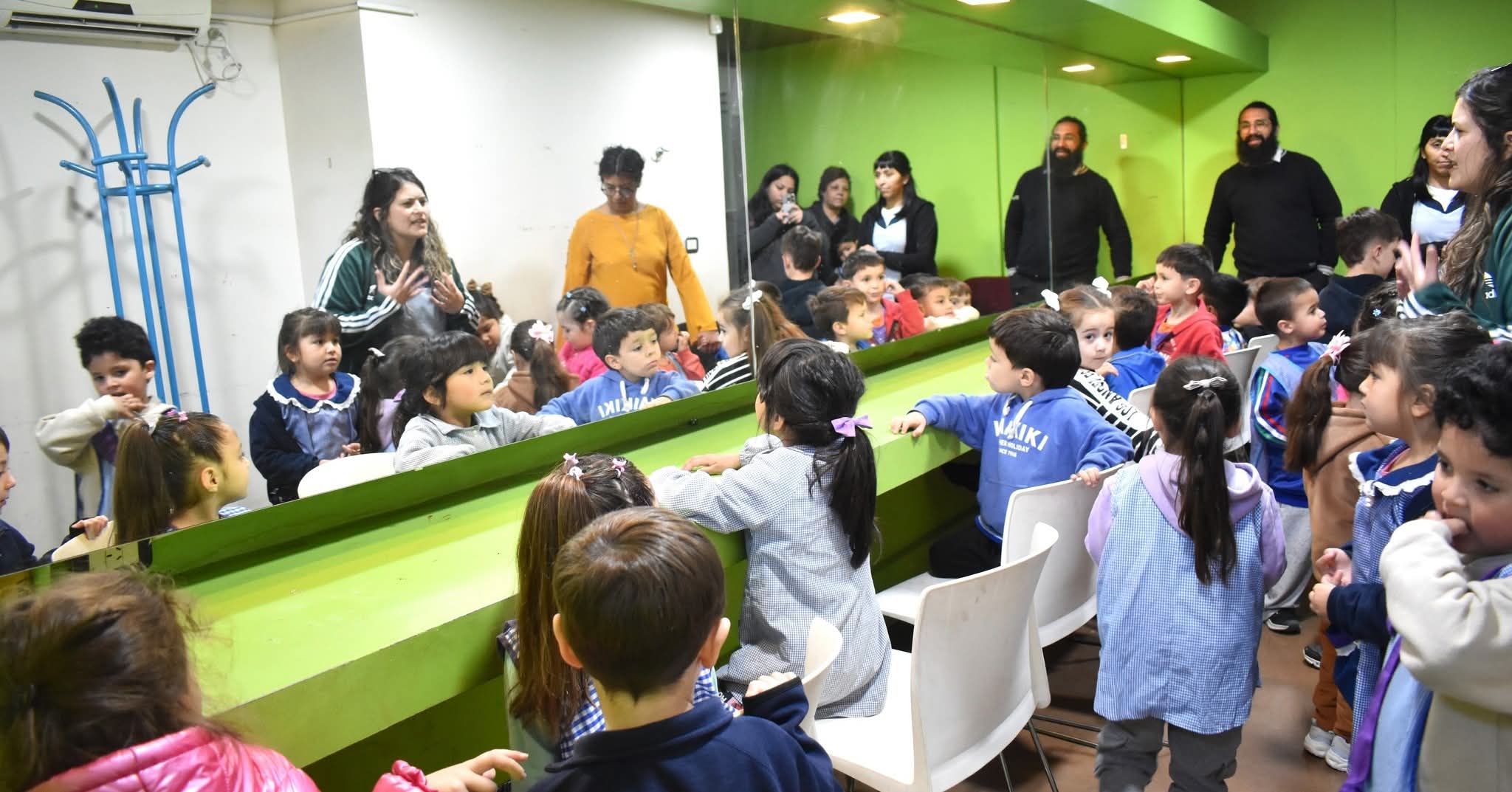 Durante la visita guiada, los niños conocieron la sala principal “Leonardo Favio”, exploraron los camarines y participaron de una divertida experiencia con el juego de luces. El momento más esperado llegó cuando subieron al escenario, donde se animaron a cantar y bailar.