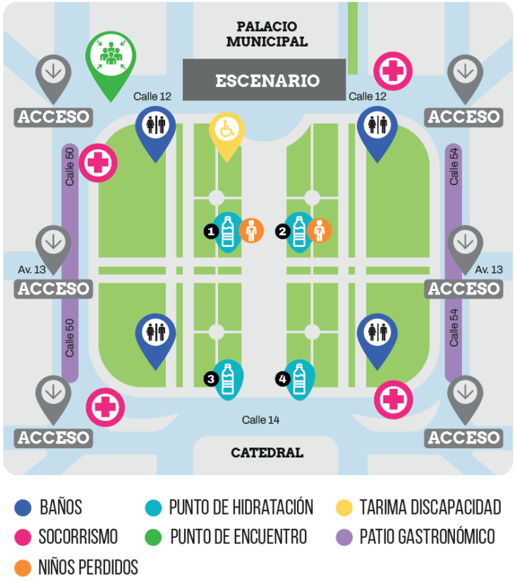 Uno de los aspectos más destacados del dispositivo es la división minuciosa del territorio. Mientras se organiza un esquema de circulación pensado para evitar saturaciones, se suman puntos de hidratación, sectores de socorrismo, baños químicos y un espacio adaptado para personas con movilidad reducida. La accesibilidad, lejos de ser un agregado, aparece como un eje transversal que define el espíritu del operativo.