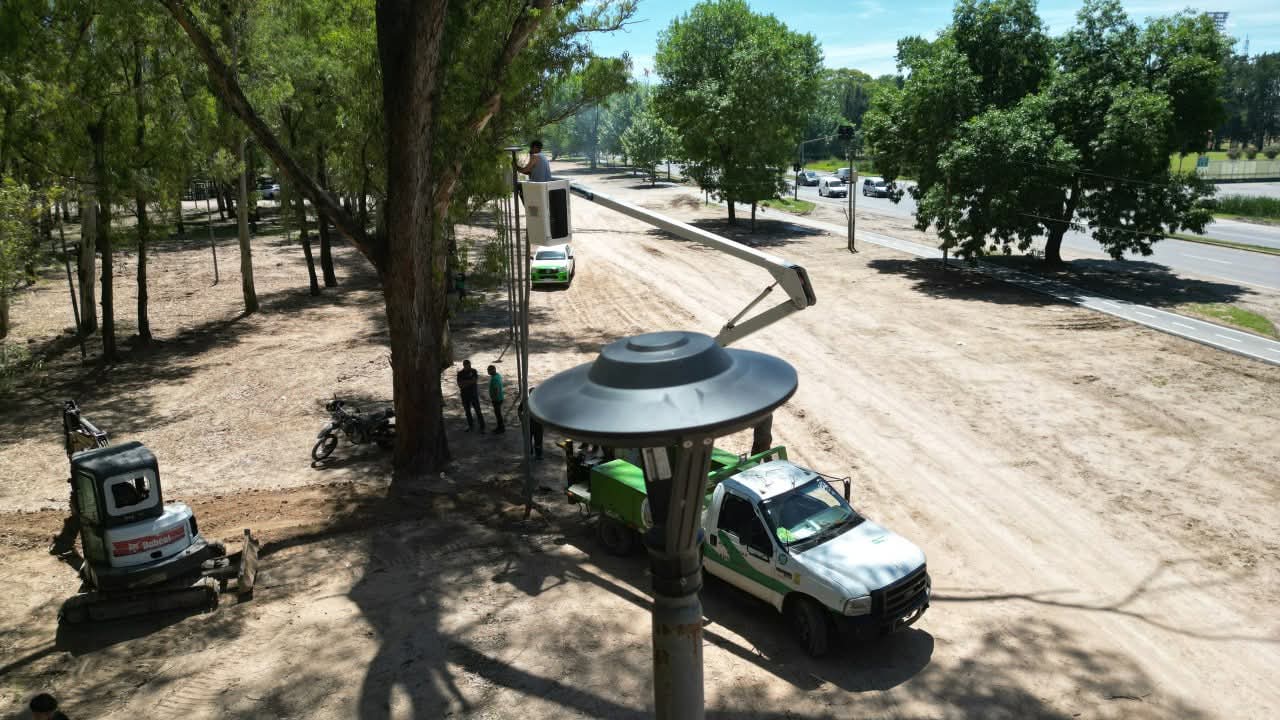 La Munipalidad continúa con la puesta en valor del Parque Martín Rodríguez. Se está trabajando en la colocación de columnas de alumbrado y sus correspondientes artefactos led.