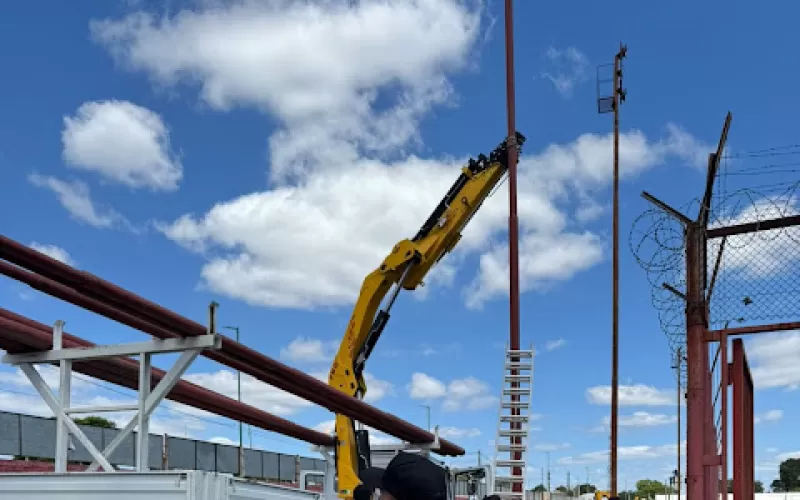 Defensores ya colocó las columnas para la obra de iluminación del estadio