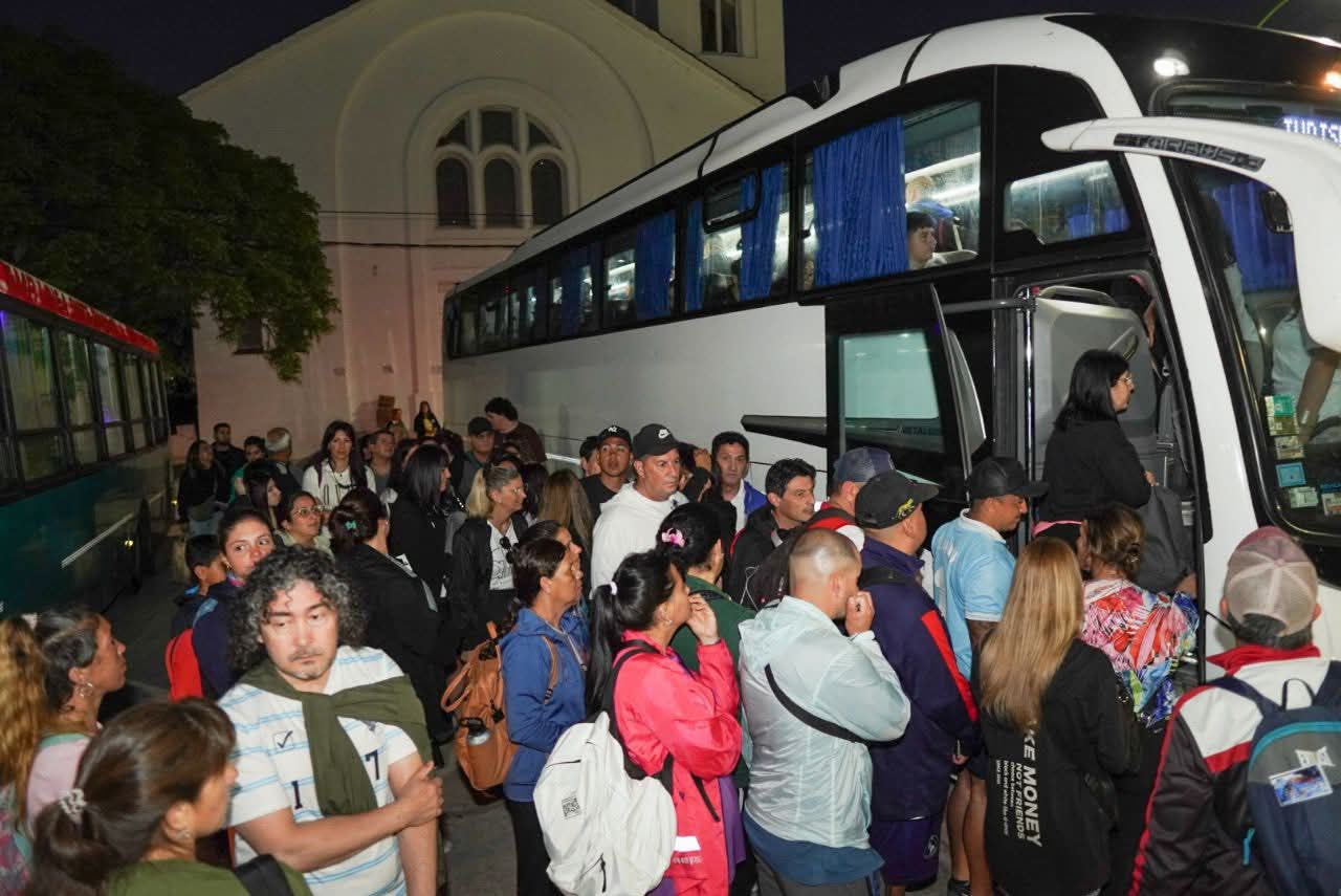 El municipio puso a dispocion los micros para el traslado de los fieles y de recursos.