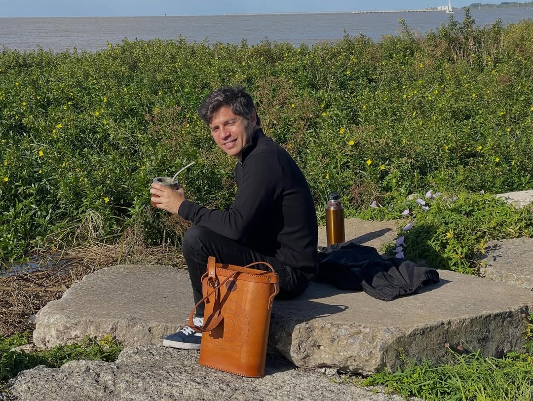 La publicación fue realizada por Soledad Quereilhac, esposa del gobernador bonaerense Axel Kicillof, quien compartió imágenes del momento íntimo. “No necesito más, ni menos”, escribió, junto a otras frases como “Un sábado ideal” y “unos mates frente al río”.